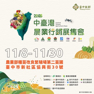 農業局說明,透過大型活動的聯合舉辦,不僅提升中台灣農業的市場曝光度與品牌價值,更象徵地方政府攜手推動農業發展的共同願景,誠摯邀請全國民眾攜家人朋友前來遊玩,一同支持在地產業,活動詳細資訊及最新動態,請持續關注「台中領鮮」臉書粉絲團(https://www.facebook.com/Agri.Taichung?locale=zh_TW)。