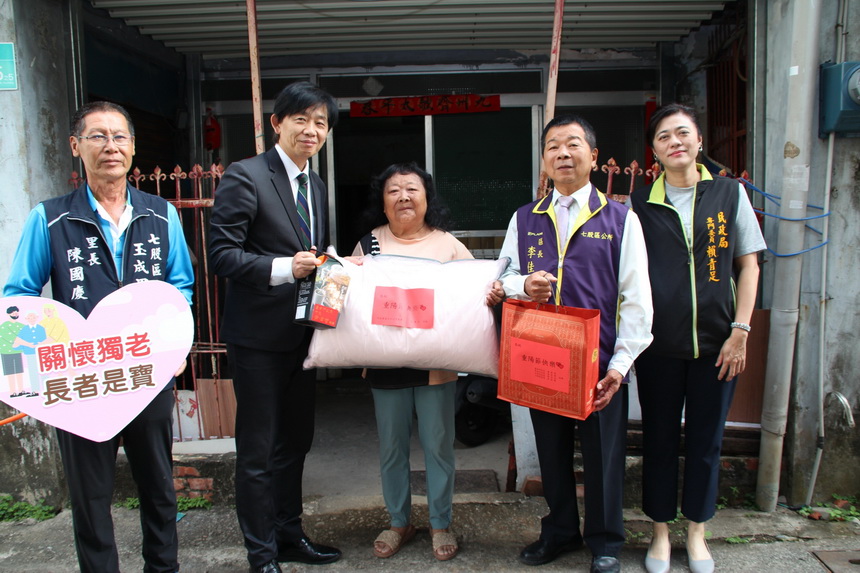 (記者邱秋逢/台南報導)七股區公所今(29)日由副市長葉澤山及區長李佳隆代表臺南市長黃偉哲,率領公所團隊及各里里長前往慰訪本區3位獨居長者,除關懷長輩生活狀況外,亦同時了解丹娜斯颱風後屋損情形,掌握災後修繕情況,展現政府溫暖與即時關懷。