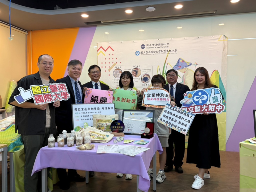 【記者林蓉英/埔里報導】暨大附中師生作品「以茶渣與檳榔梗屑之混合物為主原料之菇類培養基質,其製法及於菇類栽培之應用」,日前參賽2025台灣創新技術博覽會,獲得微星科技特別獎、銀牌以及未來創星獎三大獎項的肯定。