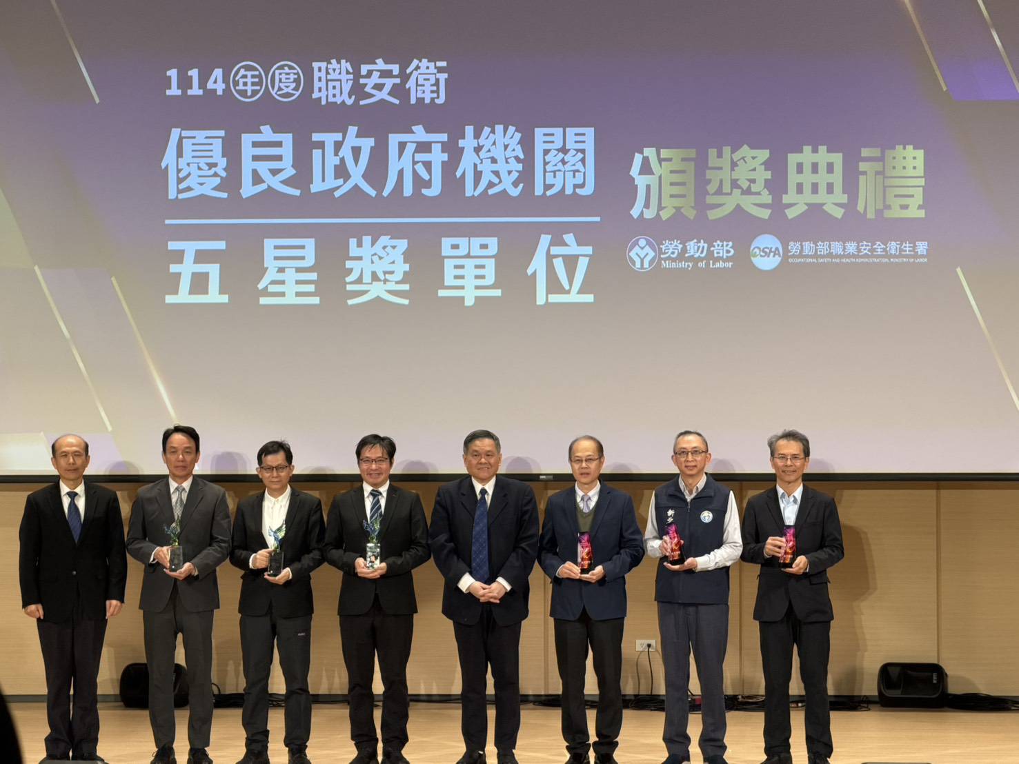 (記者邱秋逢/台南報導)臺南市府團隊為落實市長黃偉哲打造南市成為「職安城市、希望家園」的施政願景下,積極推動職業安全衛生,在持續努力下,成果逐步展現,今(114)年南市獲勞動部114年政府機關推動職業安全衛生績效評核「優等」佳績,今日勞動部於國立政治大學公共行政及企業管理教育中心辦理頒獎典禮,嘉勉各獲獎機關,市府由副秘書長殷世熙率隊代表領獎。