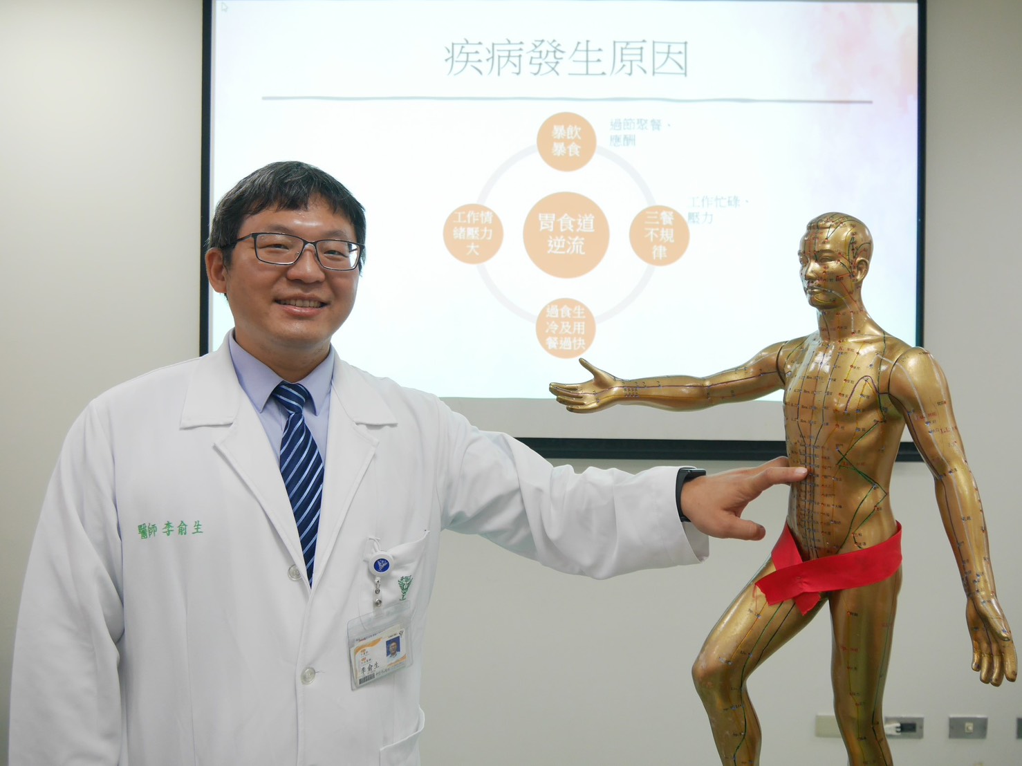 (記者邱秋逢/台南報導)案例一:李先生主訴工作生活過於緊繃且壓力極大,進食速度過快且常常邊工作邊用餐,慢慢出現進食後胃部悶脹,甚至嘔吐伴隨胸悶及橫膈下悶痛,因而前來中醫門診就診。經中醫師判斷為腹腔壓力大引發消化道傳導失常,造成食道下端與胃部開口之噴門無法正常緊閉,導致進食量多就容易嘔吐,後以中藥柴胡疏肝散加減,針灸及外用貼布緩解胃部悶脹不適感,並衛教正確飲食方法後,症狀立即獲得緩解。