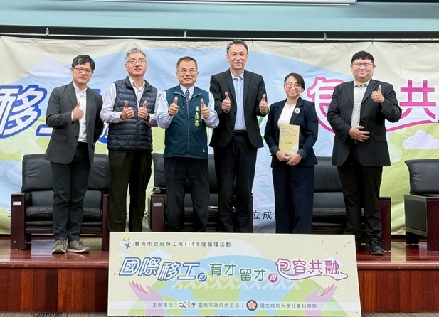 (記者邱秋逢/台南報導)為讓移工能安心在臺南工作服務,落實黃偉哲市長「希望家園」理念,臺南市政府勞工局與國立成功大學社會科學院今(5)日假關子嶺勞工育樂中心共同辦理「114年度論壇活動-國際移工的育才、留才與包容共融」,透過產官學跨域合作,共同探討臺灣移工政策、健康照護及科技應用之最新趨勢。