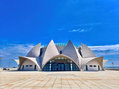 圖說:大安港媽祖文化園區基座外觀以白海豚環繞媽祖為意象打造。(觀光旅遊局提供)