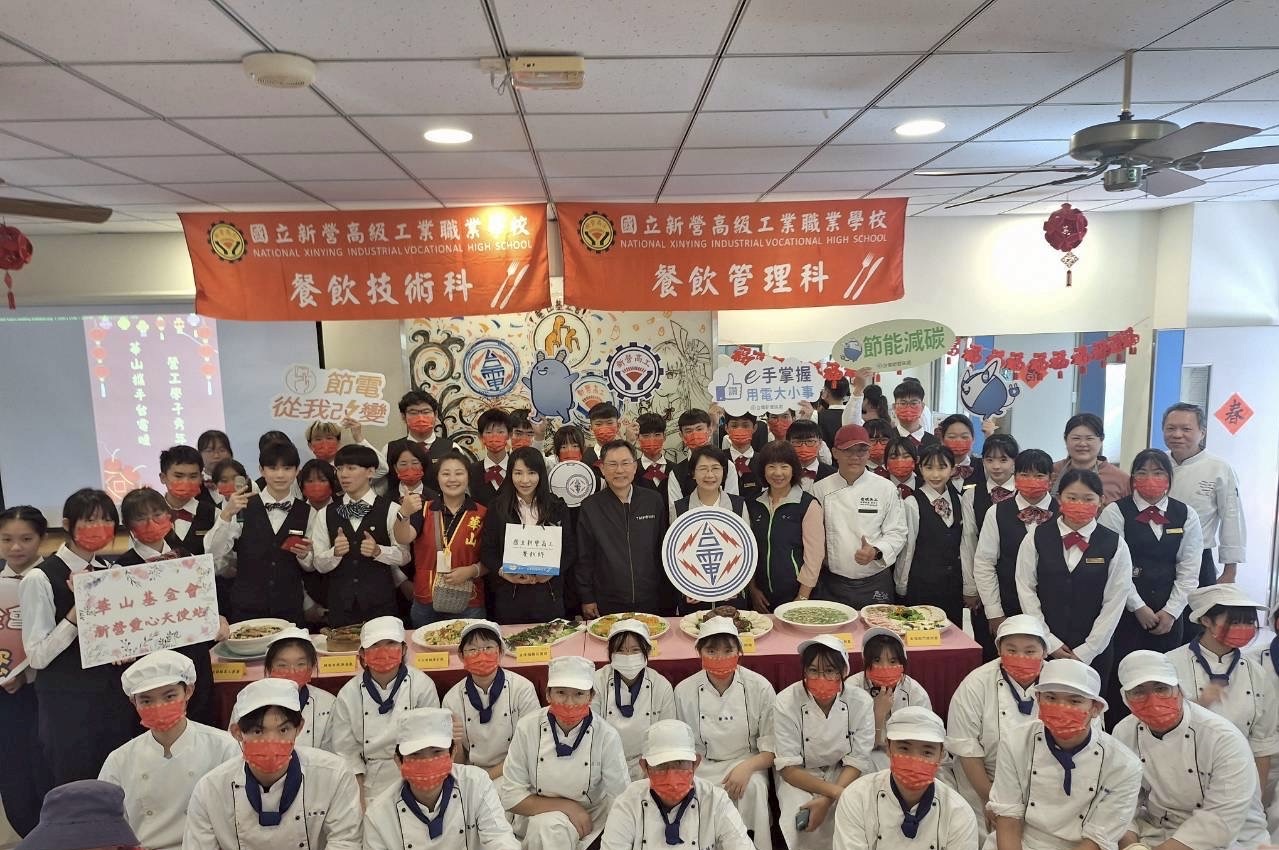 為了這場平安宴,新營高工餐飲科學生發揮課堂所學,由主任導師設計吉祥澎湃的營養菜單,再由學生親自掌勺,合力完成充滿特色的美味佳餚,這項餐飲科多年來延續的傳統善舉,不僅展現學生對社區孤老的心意,更象徵著世代之間的溫暖連結。此外,台電新營區營業處黃啓通處長也喜上加喜,特於當天代表全體同仁,暖捐華山新營天使站110份愛心年菜,逾11萬元,期盼透過在地單位、學校與華山基金會的共同合作,讓孤苦清寒的長者在歲末皆能感受到被珍惜、被重視的滋味,帶著幸福迎向新的2026年。