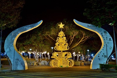 圖說:沙鹿嘉年華以7.5米高主燈「光漾水舞樹」作為迎賓亮點。(民政局提供)