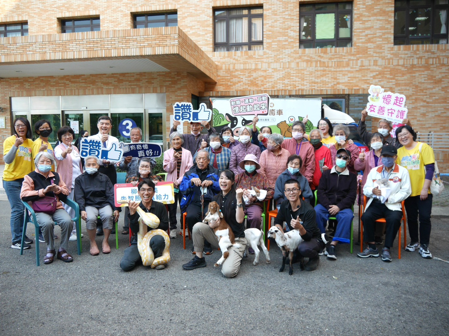 (記者邱秋逢/台南報導)為打造更友善的失智照護環境,讓奇憶學堂柳營班的長輩們走出熟悉教室,親近大自然與動物,豐富日常學習體驗,柳營奇美醫院失智共照中心特與樹谷農場合作,攜手規劃「小小動物療癒師 動物麻吉GO」課程,於22日上午在醫院生活大樓前廣場舉行,柳營奇美醫院周偉倪院長、樹谷農場王米玲場長、護理部蕭素秋部長及醫院同仁熱情參與,陪伴長輩們近距離接觸溫馴可愛的小動物,透過這些「人氣療癒師」陪伴與互動,為身心靈帶來一份溫暖及療癒能量。