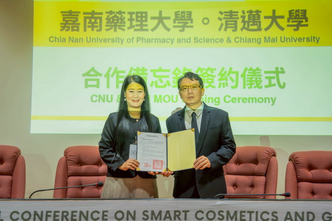(記者邱秋逢/台南報導)面對全球產業數位轉型與綠色永續加速推進的關鍵時刻,嘉南藥理大學化粧品應用與管理系於12月23、24日,在校內國際會議中心盛大舉辦「2025智慧美粧與綠色永續創新國際研討會」。活動匯聚台、日、泰、法等國際專家共同剖析最新趨勢,並舉行產學合作簽約儀式,與日隆精化、臺鹽實業、曼都國際等17家知名企業簽署MOU;同時攜手泰國清邁大學推動雙聯學制與合作協議,展現嘉藥深耕產學、鏈結國際的整合能量,為美粧產業布局下一個黃金十年。