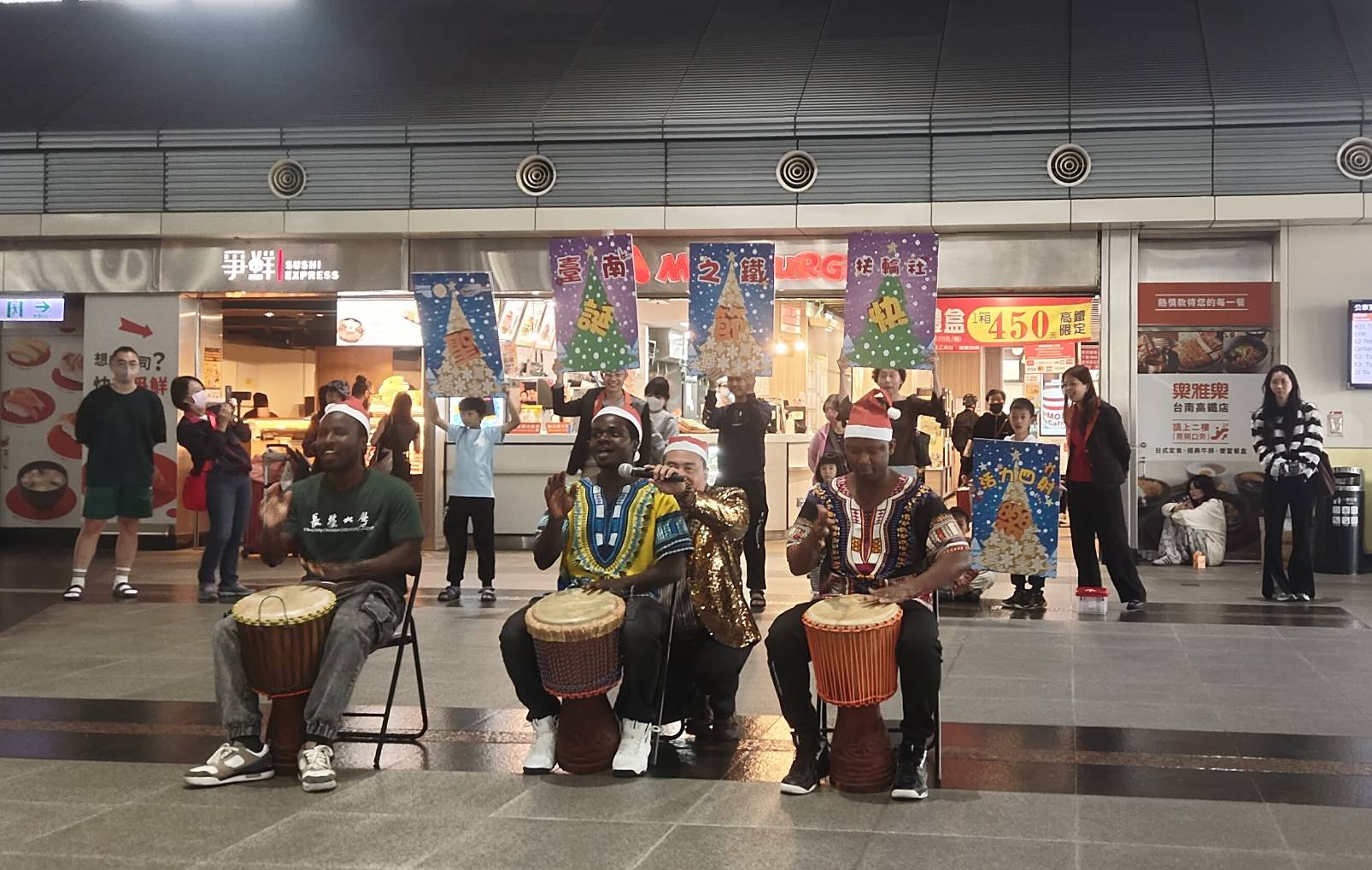(記者邱秋逢/台南報導)高鐵台南站洋溢耶誕歡樂氣氛!台南市之鐵扶輪社與台南好厝邊樂團攜手合作,今 (25) 日來到高鐵台南站快閃演出,與旅客共度溫馨耶誕。演出者精心準備富有節慶氣氛的曲目,精彩的表演讓車站內瀰漫著濃濃的耶誕與藝文氛圍,也讓過往的高鐵旅客,體驗一場聽覺與視覺的雙重饗宴,現場熱鬧歡樂,許多旅客駐足欣賞,也對能在乘車時偶遇精彩表演感到又驚又喜。