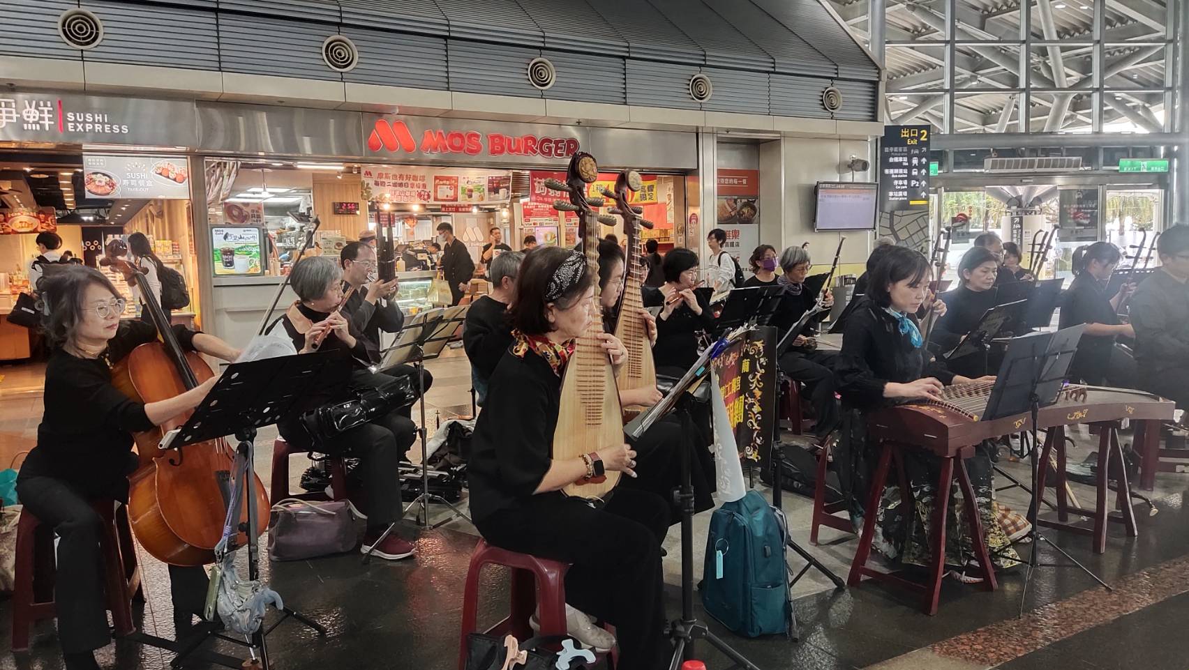 ()高鐵台南站1月25日上演一場美麗的藝術邂逅!來自歸仁區紅瓦厝國樂團,將國樂及流行樂完美融合,以多首膾炙人口的經典曲目,帶來豐富的聽覺饗宴,行雲流水的曲調,讓過往旅客沉浸在傳統與現代的音樂氛圍中,並紛紛報以熱烈掌聲,直呼這場不期而遇的表演,為旅程增添驚喜與美好回憶。