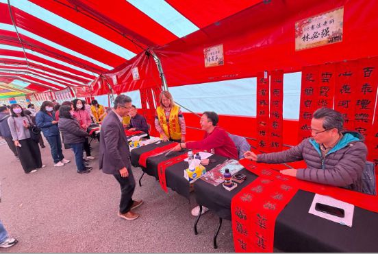 今日春聯揮毫活動特別聘請前國立臺灣藝術大學書畫學系主任,也是中山文藝創作獎、國家文藝特別獎、中國文藝獎、中興文藝獎得主蔡友教授進行開筆,並邀請張自強、吳啟林、陳墩振、彭營發、戴毓利、譚誠明、陳正杰、鄭承旻、吳國毅、余俊儀、黃瀛、陳文濱、林仁傑、王金印、林必強、楊晁承、杜進成、黃晟宏、韓紫綺、周江賜、蔡永洲、陳銘儀、侯清欽、林靖凱、童淑芬、蘇麗秋、李枝興、邱琳媛、楊尹茜、王濬智等共30位一流書法名家共襄盛舉,另也邀請「清海國中拳擊隊」~有氧拳擊表演,為新的一年點燃活力、「沙鹿高工~戰鼓舞獅」表演,開啟吉福祥端、「唐寶寶大禮樂團」以音樂串起愛的連結以及「沙鹿區竹林國小管樂團」以氣勢磅礡樂曲引領新春樂音高揚,特邀請大家共襄盛舉,