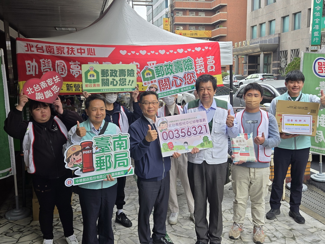 台南郵政總局徐世英副局長籲請民眾支持家扶的教育脫貧理念,「苦,不能苦兒少、窮,不能窮教育」協助弱勢求學兒少安心向學,勇敢追夢,翻轉貧窮世代,盼藉由郵局的拋磚引玉帶動,與新營郵局黃肇維經理一同籲請社會善心人士踴躍支持助學專案,讓經濟弱勢家庭能夠有更多資源投注孩子的教育學習。