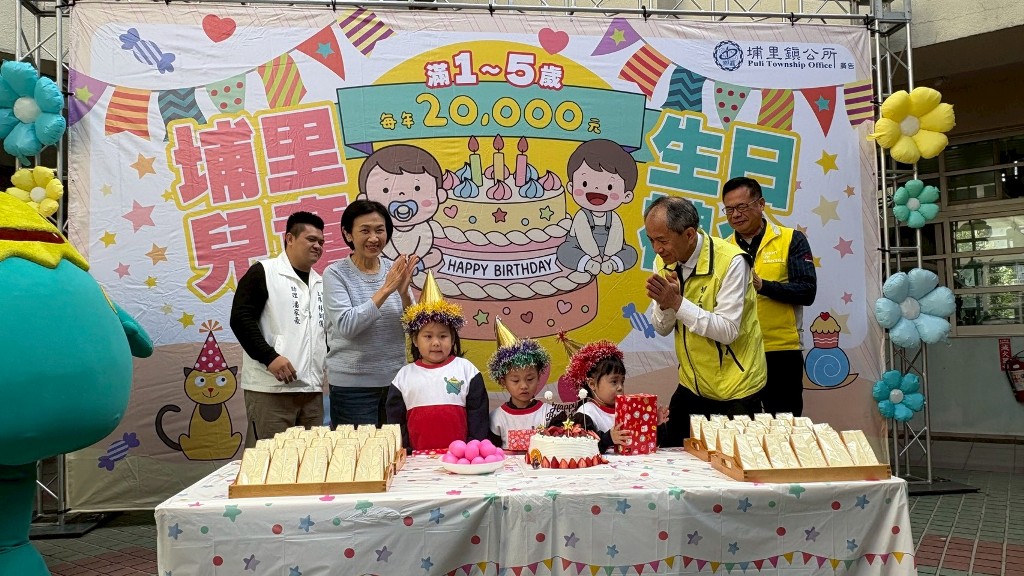 埔里鎮長廖志城表示,公所近8年來積極改善財政狀況,在財政健全的前提下,全力提升社會福利措施與擴大建設,113年已將生育補助金每胎從1萬元提高為2萬元,115年起再推動滿1至5歲兒童每年2萬元生日禮金福利政策,盼能減輕家長育兒的經濟負擔,這項重大福利措施去年底已獲得鎮民代表會支持審議通過。