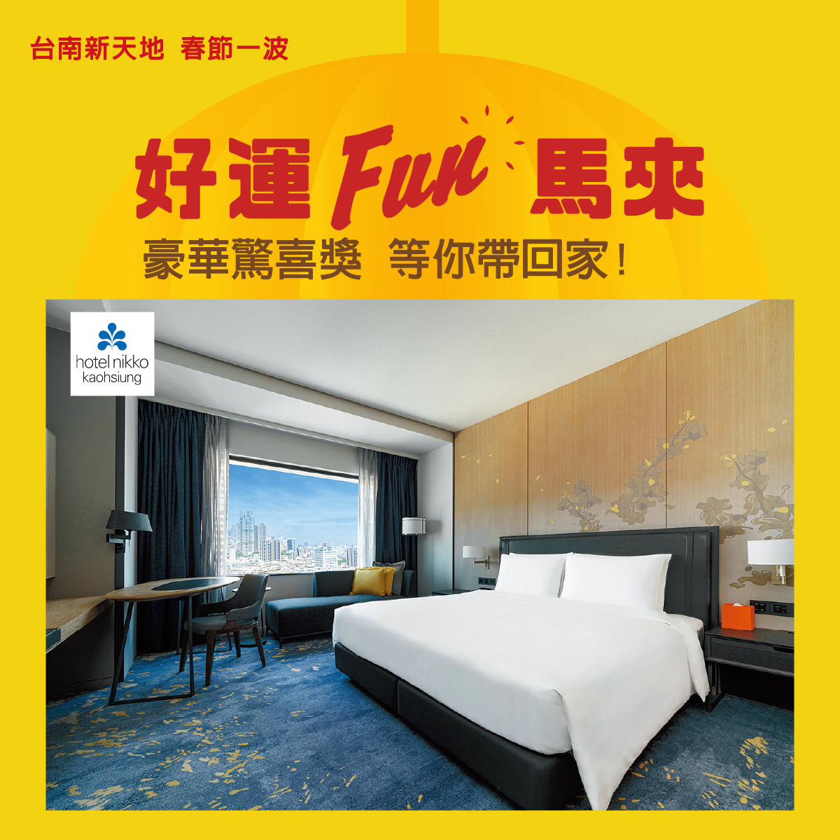 其中高雄日航酒店擁有260間精緻客房,將當代日式設計與高雄在地特色完美融合,營造出寧靜舒適的入住氛圍。今年透過新光三越新春福袋,不僅能搶好運,更有機會獲得高雄日航酒店住宿券,讓新的一年以尊榮享受開啟,體驗結合日式美學與高雄風情的奢華住宿,為春節旅程增添難忘回憶