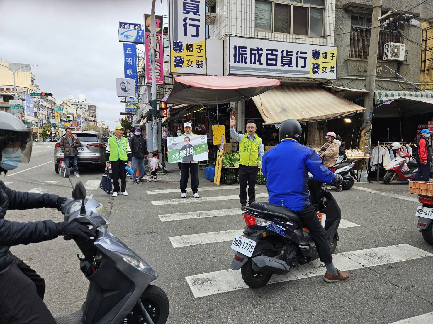 圖二:林東誼在路旁向路過者懇託支持。(記者楊川欽攝)