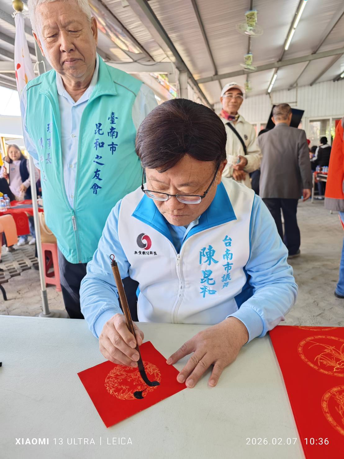 (記者邱秋逢/台南報導)昆和之友會於2月7日上午在佳里安北路會址舉辦「和你迎春納福—名家揮毫送春聯」活動,一早社區鄉親便熱情湧入排隊等候,現場約300人洋溢濃濃年節喜氣與歡樂氣氛。