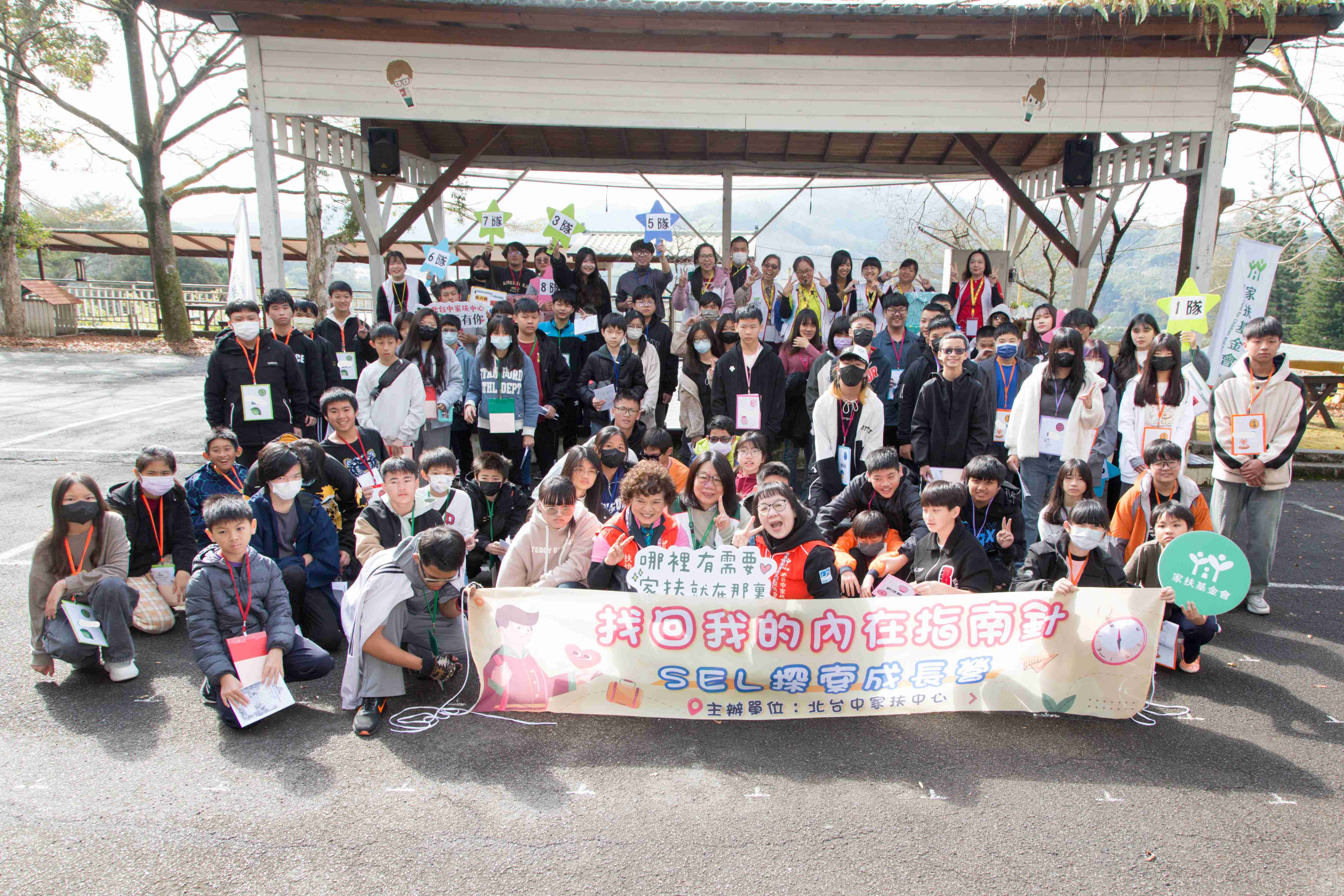 北台中家扶中心於7日至8日在台中市東勢區雄鷹探索體驗活動園區舉辦的「找回我的內在指南針:SEL探索成長營」中,兩天一夜的營隊,陪伴來自受扶助的70位國中生,透過體驗活動與團隊合作,學習認識情緒、理解他人,並在挑戰中練習做出選擇。