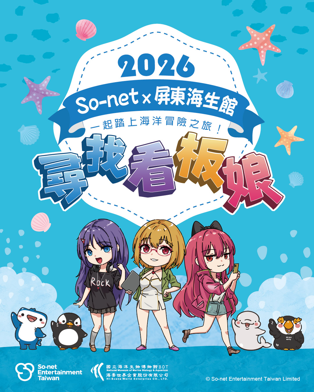 寒假與農曆春節期間(1 月 24 日至 4 月 6 日),海生館推出主題活動「海洋魔法派對」,以「看似魔法,實為生存智慧」為策展概念,透過奇幻命名與特色展示,帶領民眾用不同視角認識海洋生物,現場並規劃變裝打卡、吉祥物見面會與互動體驗,適合全齡參與。