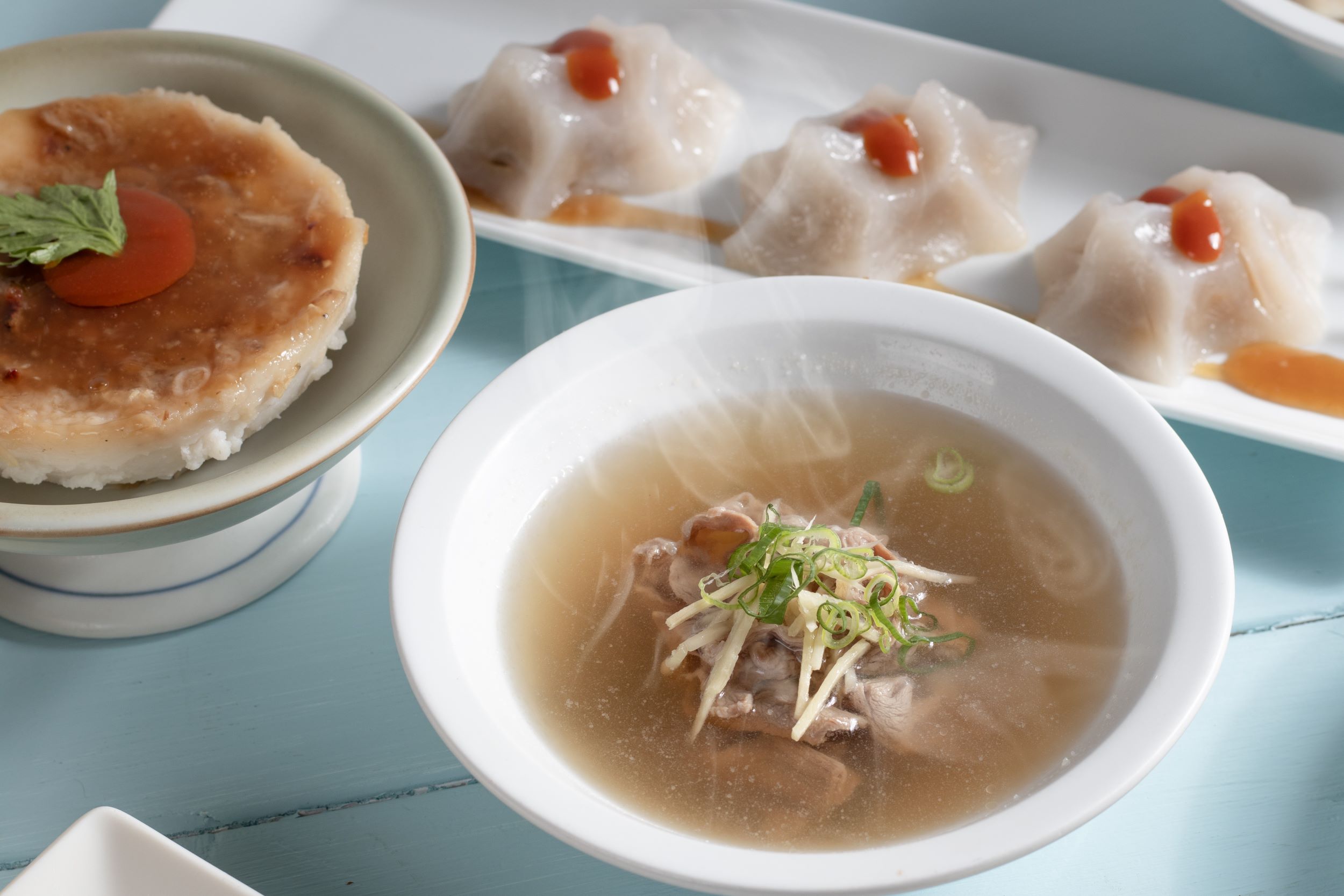 早晨則以最具台南代表性的滋味迎接新的一天!首先登場的是台南經典現沖牛肉湯與鮮甜的虱目魚皮湯。滾燙高湯沖淋新鮮牛肉片,粉嫩肉質在湯中舒展,湯頭清甜溫潤,是屬於臺南清晨的溫柔儀式;虱目魚皮湯則鮮香滑嫩,帶著海港城市特有的風味,再來一碗香氣四溢的肉燥飯,鹹香醬汁與白飯交織,是最道地的府城日常。蒸籠裡還有熱氣騰騰的小肉粽與燒賣、台味十足的虱目魚頭料理,無需清晨排隊,在飯店裡即可一次品嚐這些熟悉的經典台南味,為南行旅程注入滿滿元氣!此外,餐檯亦備有壽司與暖胃清粥,滿足不同旅人的選擇;喜愛傳統風味者,可來一碗香氣濃郁的鹹豆漿;偏好西式餐點者,也有現做蛋料理與經典西式早餐。現烤麵包區則陳列鬆軟吐司、酥香可頌,以及結合在地特色的虱目魚鬆麵包,更是令人驚喜的小巧亮點。