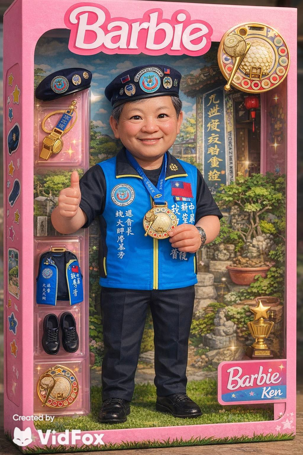 榮耀勝利獎章直徑8公分,藍色漸層半球體吊帶,由書法協會理事長,氣象陳進展學長行草執筆,左右各書寫空軍航空技術學院90週年校慶,中央軍事院校校友盃第11屆全國慢速壘球錦標賽字樣,創造性、誠意性,話題十足。