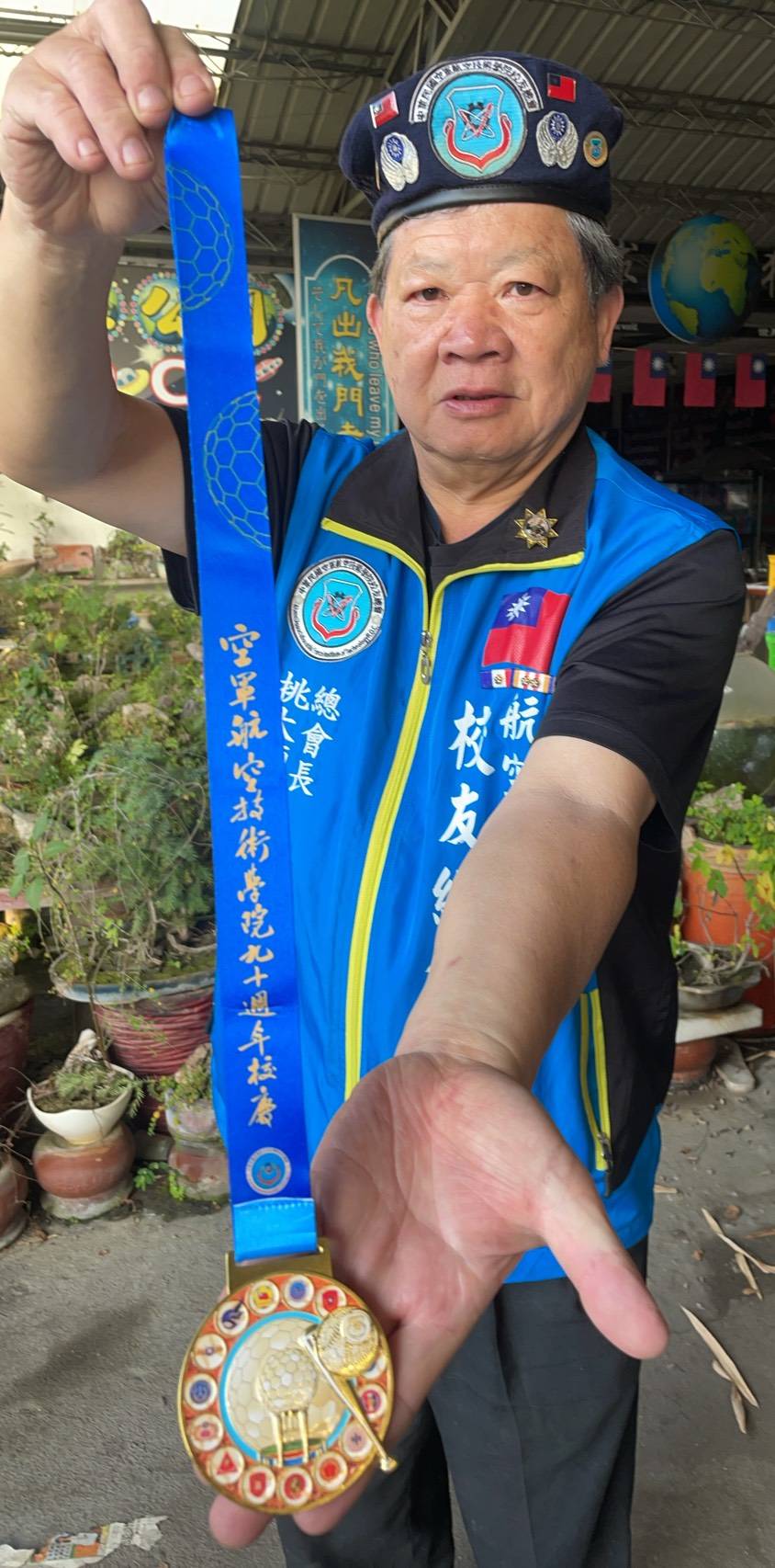 (記者邱秋逢/台南報導)ㄧ年前,空軍航空技術學院校友壘球隊,勇奪第十屆中央軍事院校校友盃冠軍,隔年即為航院建校90週年,遂與球隊討論,興起主辦第11屆校友盃慢壘賽的契機。獎章製作沒有文字,主視覺傳遞,校友及壘球愛好者,心神領會,高超的設計,一窺便知。〔壘〕球與〔雷〕達外罩同音,且同為〔圓形〕兩相連結,易記易懂,雷達為航技學院,訓練學生,重點教育專長課程,更為空軍戰管備戰眼睛,日夜戍守臺灣領空、海岸,毫不懈怠,圓形雷達外罩貌如一顆大球,渾圓穩重,心防即國防,全民國防,讓國人有一種安定安心的感覺,藉以慶空航院90週年校慶,乃屬天作之合。