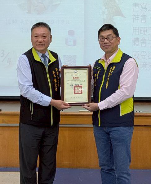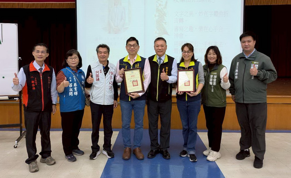 (記者邱秋逢/台南報導)新營區圖書館3月4日在新營區公所3樓禮堂辦理「手寫的溫度/硬筆舒活課程」,現場邀請臺灣硬筆書法協會理事長許旗成博士教授硬筆書法,新營區長陳宏田及立委、議員代表皆出席與會,許博士授課認真,講解清晰有趣,配合簡報及現場書寫,展現出硬筆書法的線條美與藝術感。參加學員照著講義範本練習,體會筆觸所帶來的韻律與流暢,行雲流水地書寫出一手好字。