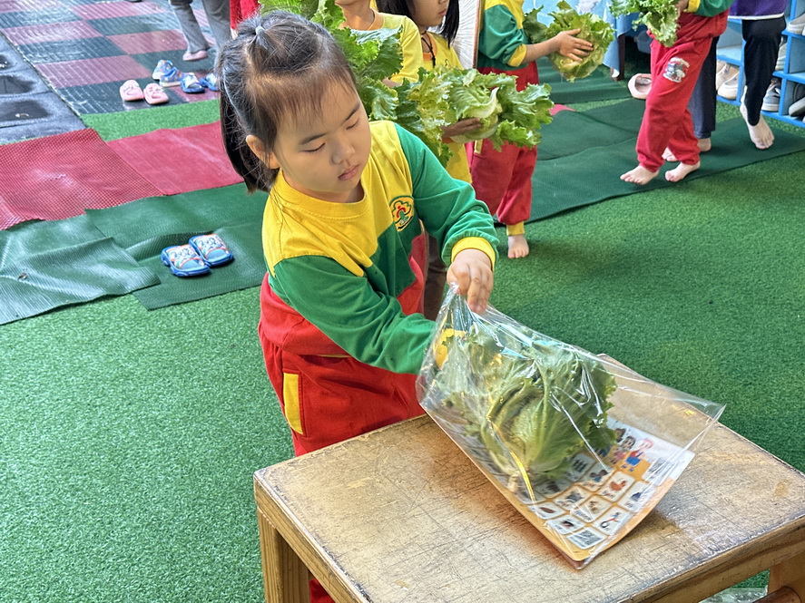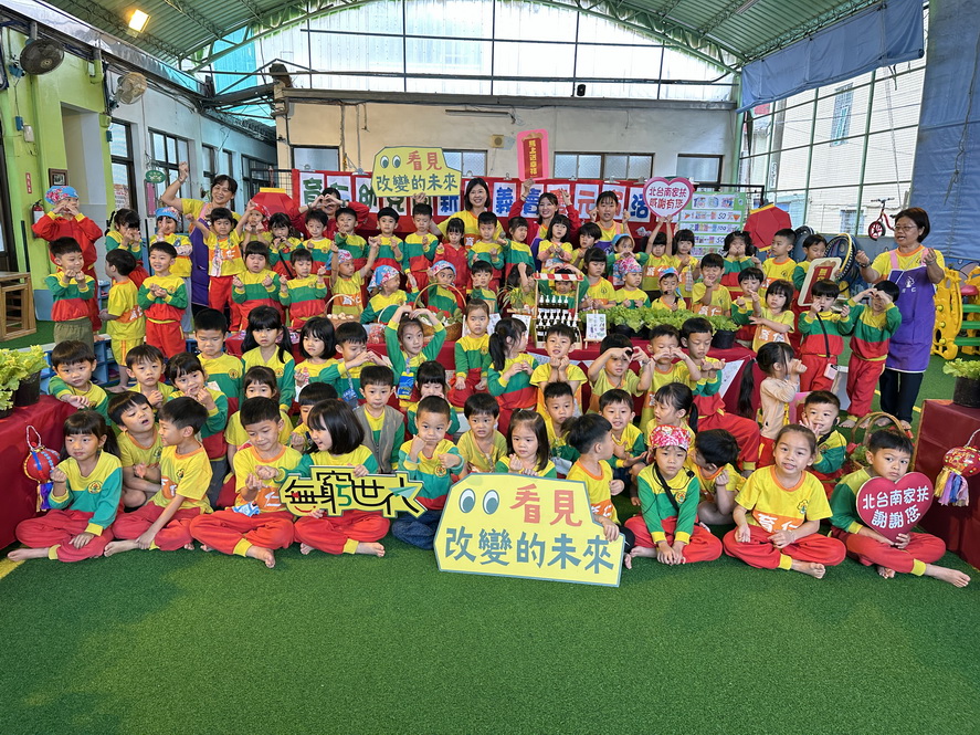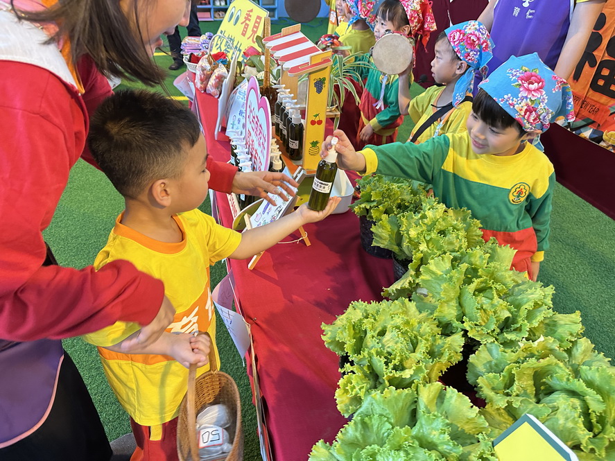 許園長相當認同教育的重要性,因緣下參與家扶的兒童啟力計畫,接觸到許多弱勢家庭,深刻體會到弱勢孩子常受限於家庭因素輸在人生的起跑點,除了學習資源不足外,在食衣住行各項基本所需都有匱乏,同時家庭需照顧生病的家人,或者主要照顧者自身有身心健康狀況,甚至有重大疾病等議題,影響家庭的生活維持和孩子的成長、就學需求。因此全校已是第四年配合新春義賣活動,原本學校就有推動食農教育體驗,蔬果都由小朋友輪流澆水照顧,讓小朋友體驗「從無到有」的種植歷程,更讓小朋友嘗試由錯誤中思考如何種得更好。許園長得知家扶每年都會舉辧無窮世代義賣活動,全校師生都極力支持愛心義賣活動,並將園內的蔬菜拿來義賣,從栽種、採收、包裝上架和義賣,都是小朋友自己來,成就感滿滿,另有師生齊力製作天然茶樹清潔液,以及熱心家長捐贈的玩具手錶和襪子,期透過小朋友的愛心傳遞邀請民眾做公益為開春討好采頭!小朋友們看到民眾及家長們購買自己努力栽種的蔬菜時,更是賣力的大喊「愛心義賣趕快來買哦!」。今年更特別選擇於元宵節進行義賣活動,除了搭配節日的介紹外,也讓小朋友們帶著感恩和回饋的心進入新的年度。