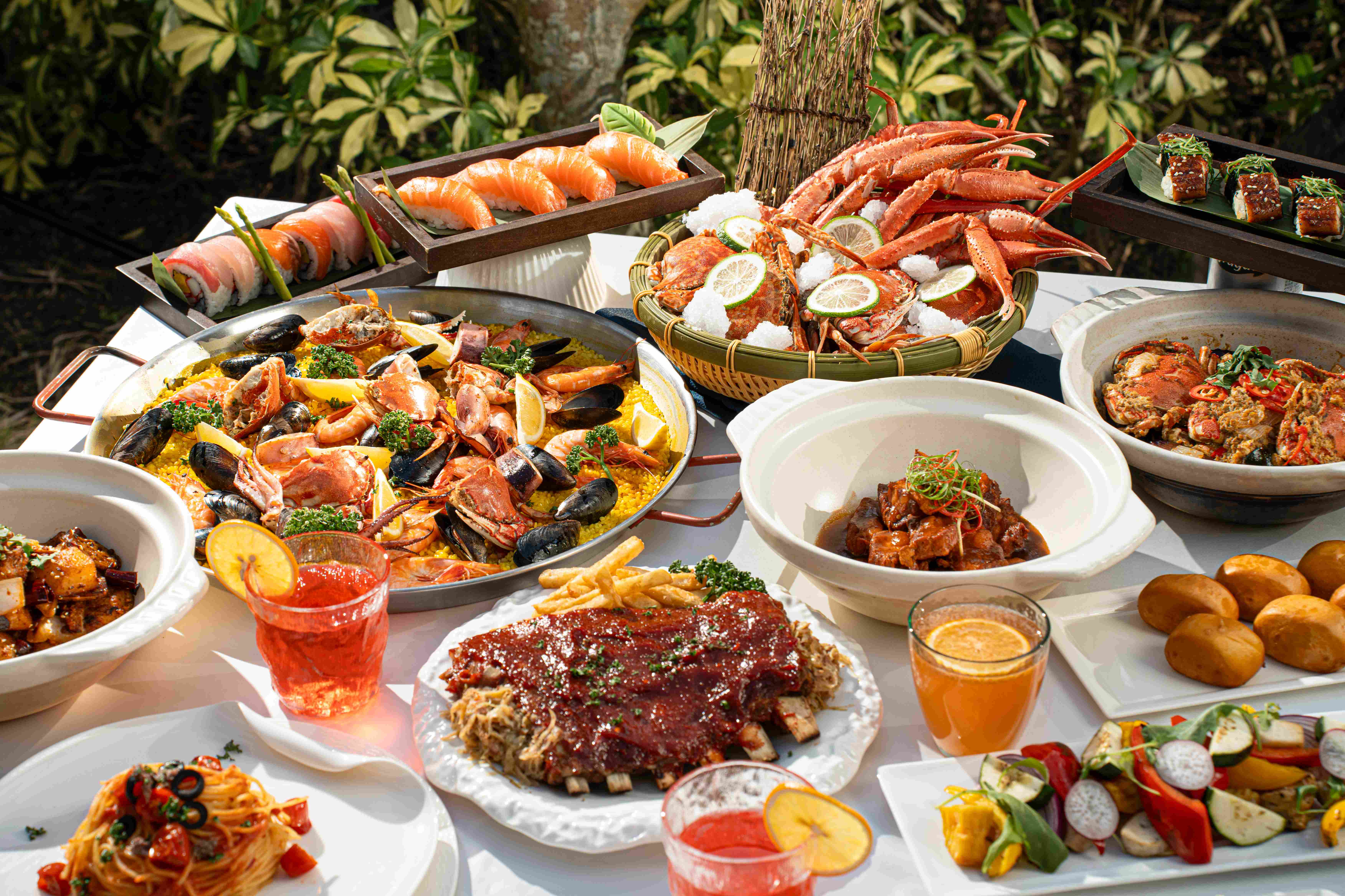 除了甜點與氣泡酒營造節日氛圍,其他餐點也同樣精彩!假日午晚餐主打升級限定海味,包括肉質鮮甜飽滿的松葉蟹腳、口感細緻的巨大鮭魚握壽司、外酥內嫩的廣島炸牡蠣、香濃滑順的法式白醬焗生蠔,以及充滿海港風味的小卷米粉…等人氣料理;平日晚餐則精選推出香嫩多汁的爐烤豬肋排、層次豐富的西班牙海鮮飯、鮮香濃郁的煙花女海鮮義大利麵,以及晶瑩飽滿的鮭魚卵手卷,呈現海陸交織、份量與風味兼具的料理,讓旅人在用餐時感受到春日的豐盛與活力!即刻訂位:06-512-1807