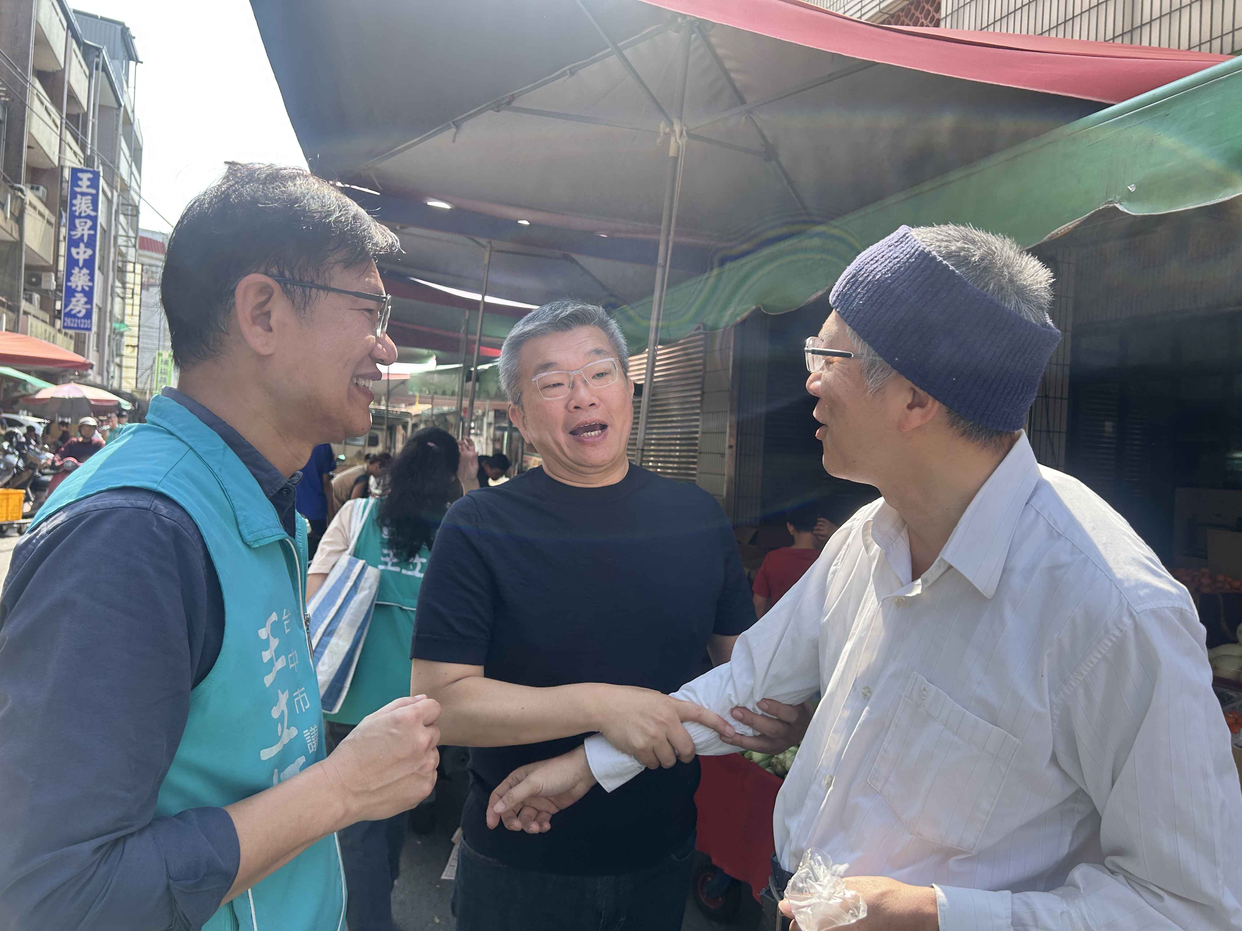 市議員王立任於21日邀請立法院民進黨黨團總召蔡其昌親自陪同,走訪清水菜市場向鄉親拜託,呼籲鄉親在關鍵時刻大力支持王立任,守住海線優質的一席。