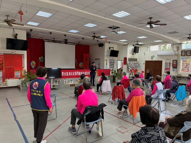 台中市清水警分局於日前前往清水區南社里社區活動中心關懷據點,向長者宣導「假投資、假網拍」等詐騙手法,此外,長者早晨也經常前往鰲峰山公園、風箏廣場、烤肉區等及紫雲巖等處所運動散步,清水警方亦加強轄區行人安全交通宣導,期望長者外出穿亮色衣物及配戴發光或反光手(或腳)環,以提醒來往駕駛注意,保護自我及用路人安全。