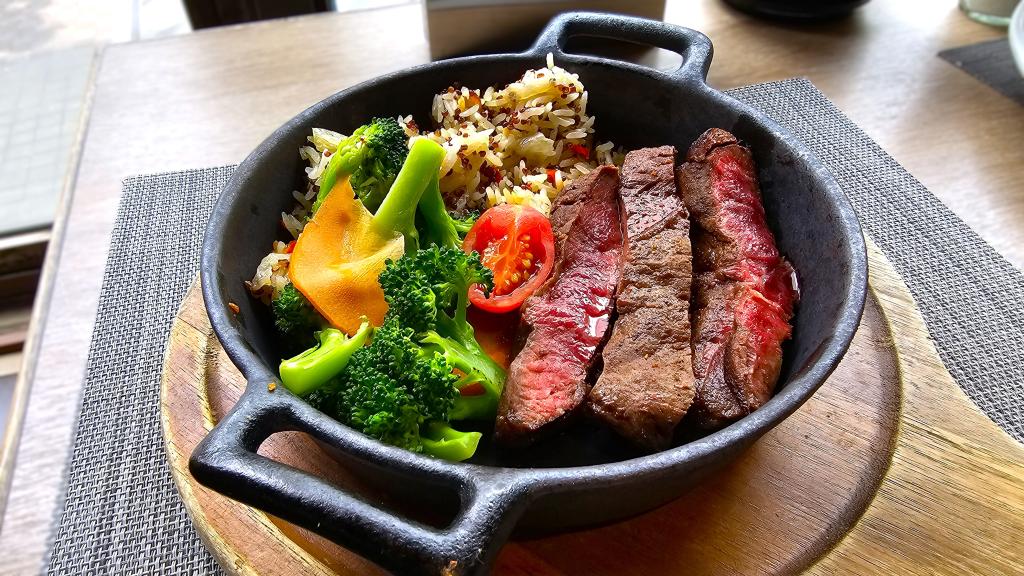 主餐方面,路易莎集團保留原品牌特色也擴大餐點內容,餐廳除了有經典六盎司與十二盎司招牌片燒嫩肩牛排、經典起司漢堡、烙鐵雞胸香料飯、紅酒燉牛肉外,也推出更多元的海鮮、豬排及多款義大利麵與燉飯新品,包括堅果波特菇奶油牛肝菌麵、海鮮總匯燉飯等,最低只要320元起即可品嚐。