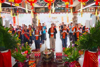圖說:鄭副市長率市府團隊及各友宮代表進行團拜祈福。(民政局提供)