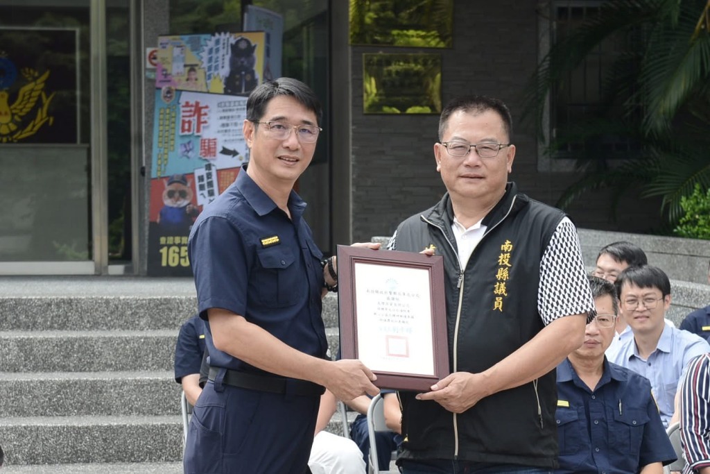 現場首先由劉分局長致詞感謝莊議員及南投縣商業會等熱心人士,隨後進行捐贈儀式,陳副局長及劉分局長也逐一頒贈感謝狀,對商業會每位成員表達最高的謝意。