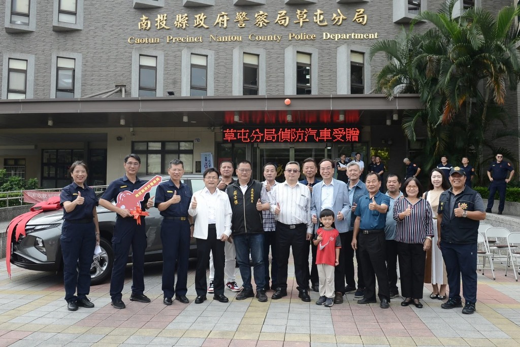 【記者張彥勳/草屯報導】為強化警方治安維護工作,提升警用裝備效能,縣議員莊士傑邀集南投縣商業會等人士,共同出資捐贈偵防車1輛,提供草屯警分局偵查隊使用,27日於分局門口廣場舉行捐贈儀式,由南投縣商業會理事長廖俊哲代表捐贈,草屯分局長劉千祥代表受贈。