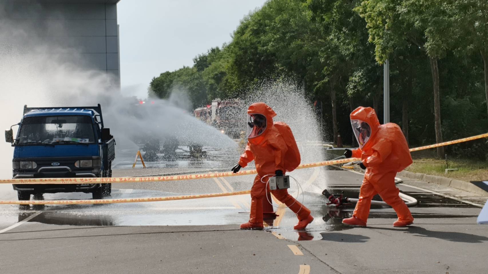 南科管理局蘇永富組長表示,防災演練由園區內廠商依據需求每年輪流辦理,不僅是對現有防災機制的檢視,更是強化園區緊急應變與災後復原能力的重要訓練平台。對於面對各類不可預見的災難,我們每個人都是防災的第一線,除了依賴專業的消防隊伍應對災情,更應加強自我防範意識,從火災預防、危險辨識到災後處置等各環節,強化個人保護能力,以利提升園區整體的防災能力與應變效率。