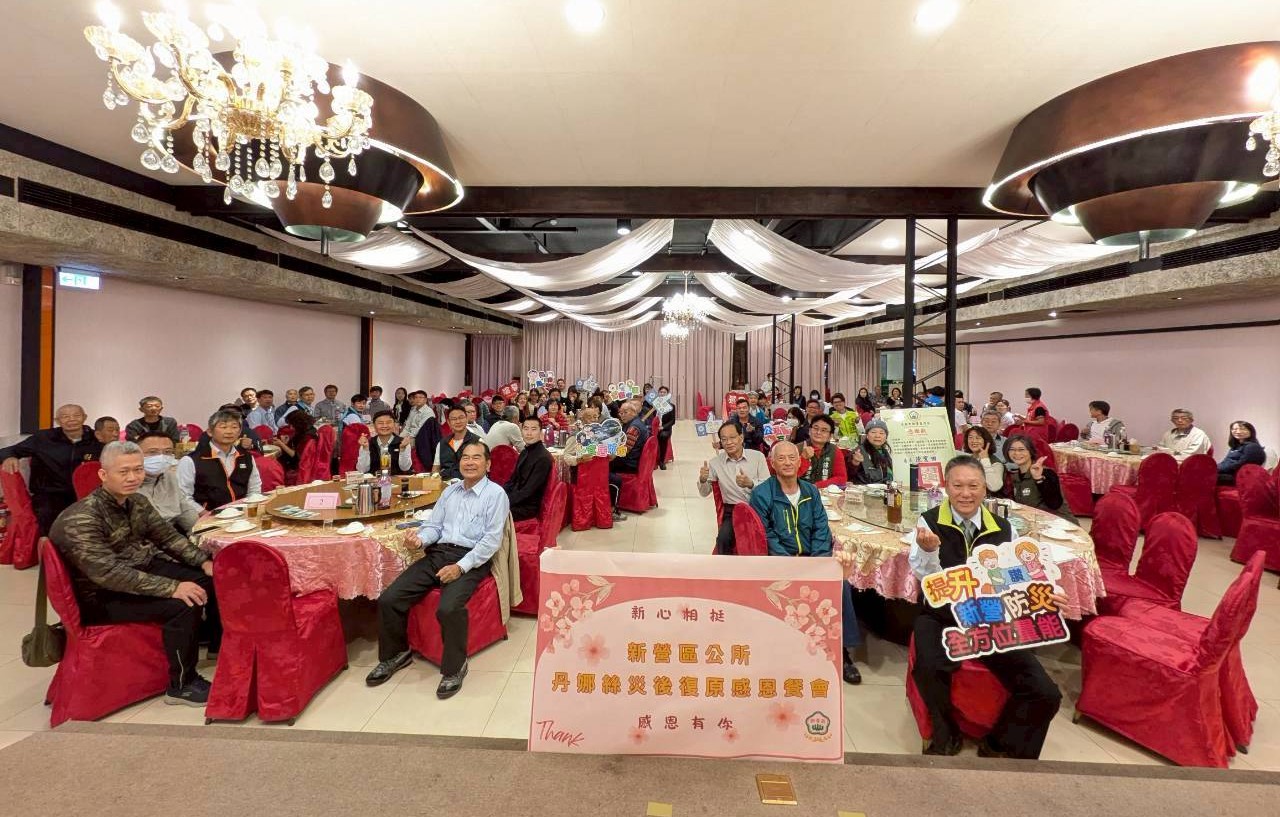 (記者邱秋逢/台南報導)丹娜絲颱風於7月挾帶強風重創台南溪北地區,新營區多處受災嚴重,造成大規模停電、路樹倒塌與屋頂毀損。災後復原歷經艱辛,感謝公私協力、各界企業團體及志工等單位通力合作,迅速展開災後重建,為感謝各界支援,新營區公所於11月27日舉辦「丹娜絲災後復原感恩餐會」,向所有在災後伸出援手的夥伴致上最深的敬意與感謝。