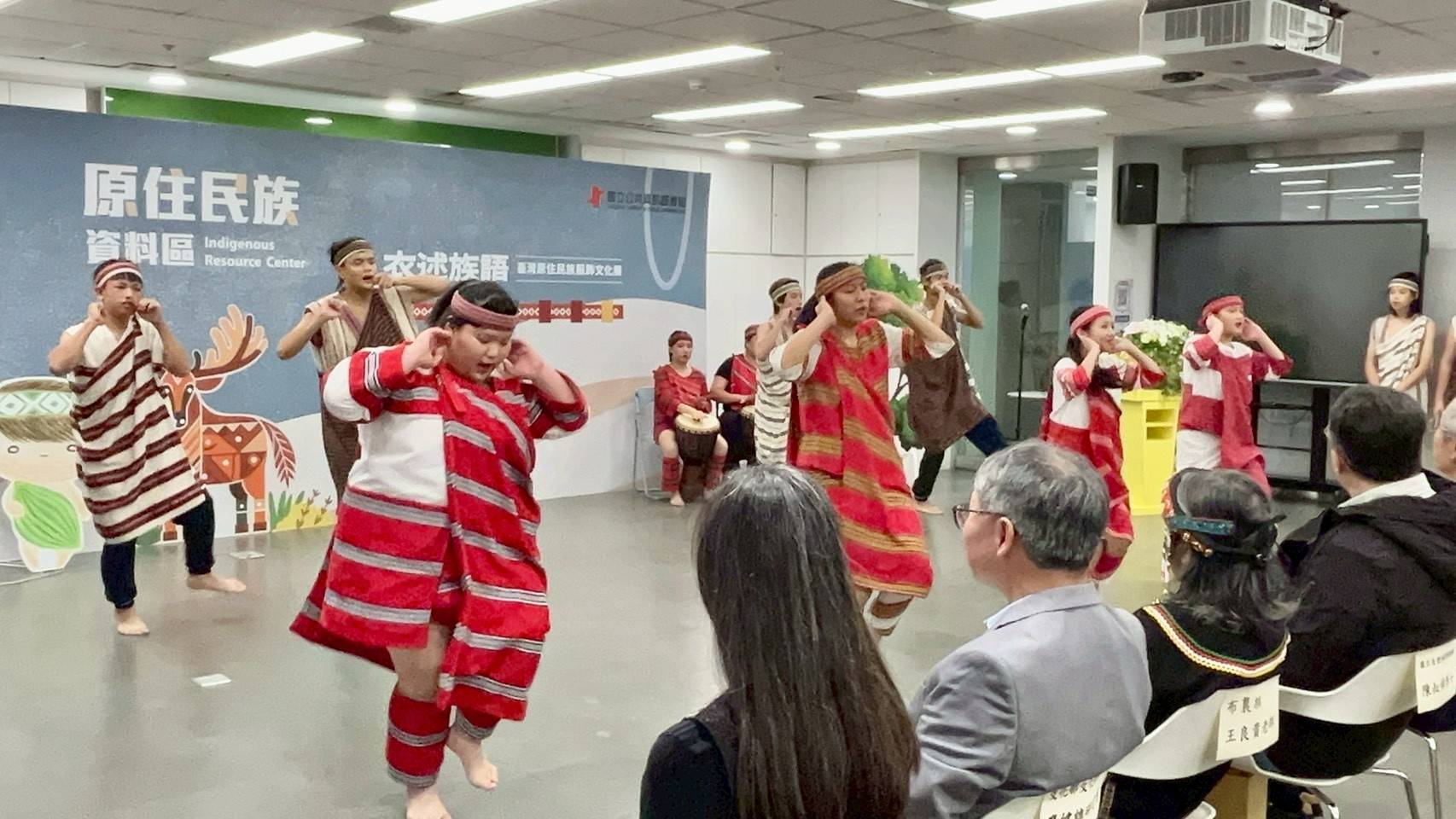 重新開放的原住民族資料專區以「探索、學習、對話」為主軸,規劃了融合閱讀與展覽的新空間,展示臺灣原住民族16族的文化樣貌,包含介紹書籍、服飾及生活器物等,供讀者深入了解,另外也同時開設「衣述族魂」特展,介紹臺灣原住民族服飾工藝之美,展期至明年3月30日止,和平國中是原民文化實驗學校,原漢學生各半,跨文化學習是學校的特色,泰雅舞蹈為必修課程,開幕表演鼓聲一響,學生們以沉穩步伐、整齊隊形展現傳統之美,吸引現場觀眾目光,掌聲不斷。