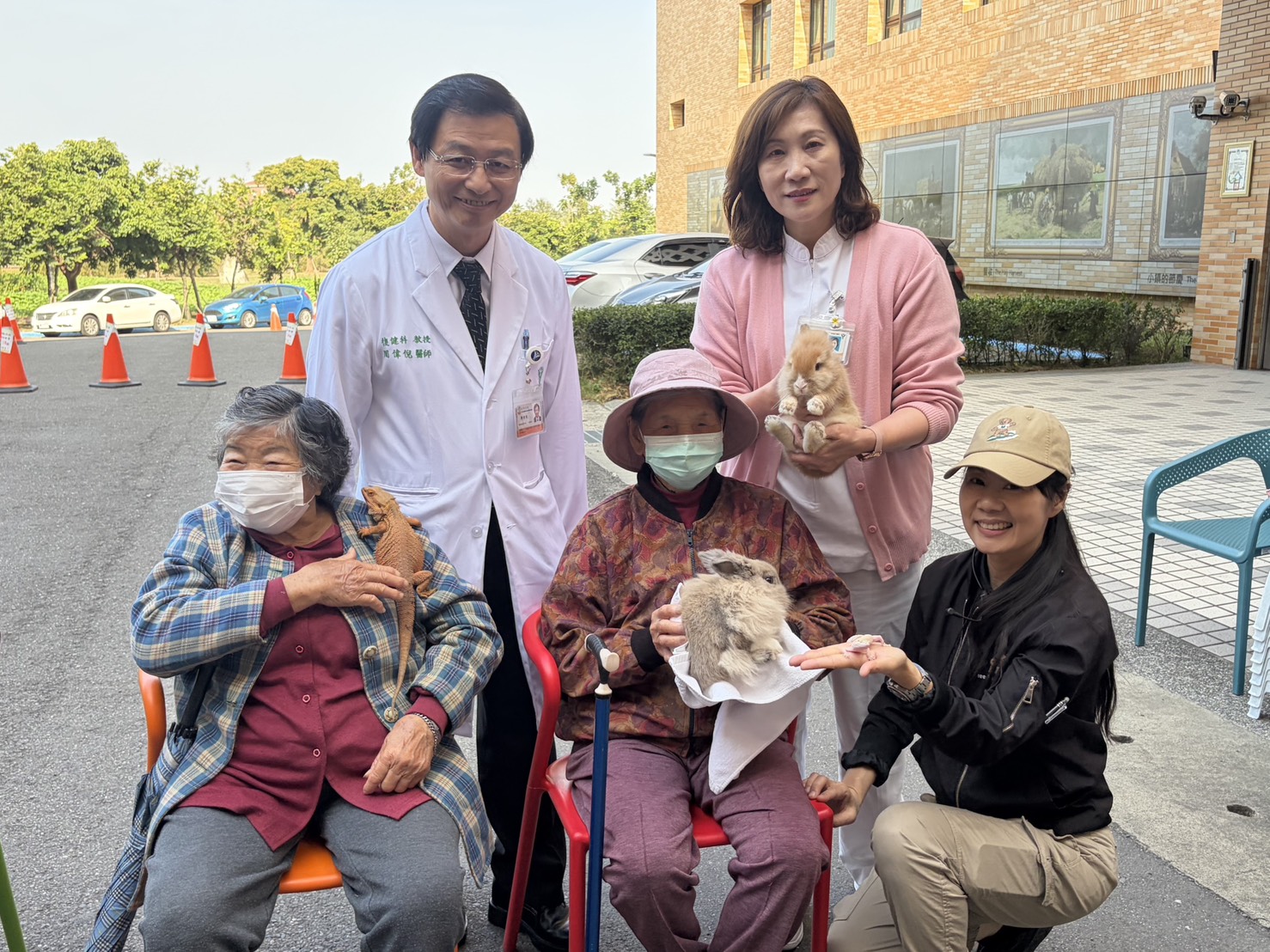 (記者邱秋逢/台南報導)為打造更友善的失智照護環境,讓奇憶學堂柳營班的長輩們走出熟悉教室,親近大自然與動物,豐富日常學習體驗,柳營奇美醫院失智共照中心特與樹谷農場合作,攜手規劃「小小動物療癒師 動物麻吉GO」課程,於22日上午在醫院生活大樓前廣場舉行,柳營奇美醫院周偉倪院長、樹谷農場王米玲場長、護理部蕭素秋部長及醫院同仁熱情參與,陪伴長輩們近距離接觸溫馴可愛的小動物,透過這些「人氣療癒師」陪伴與互動,為身心靈帶來一份溫暖及療癒能量。