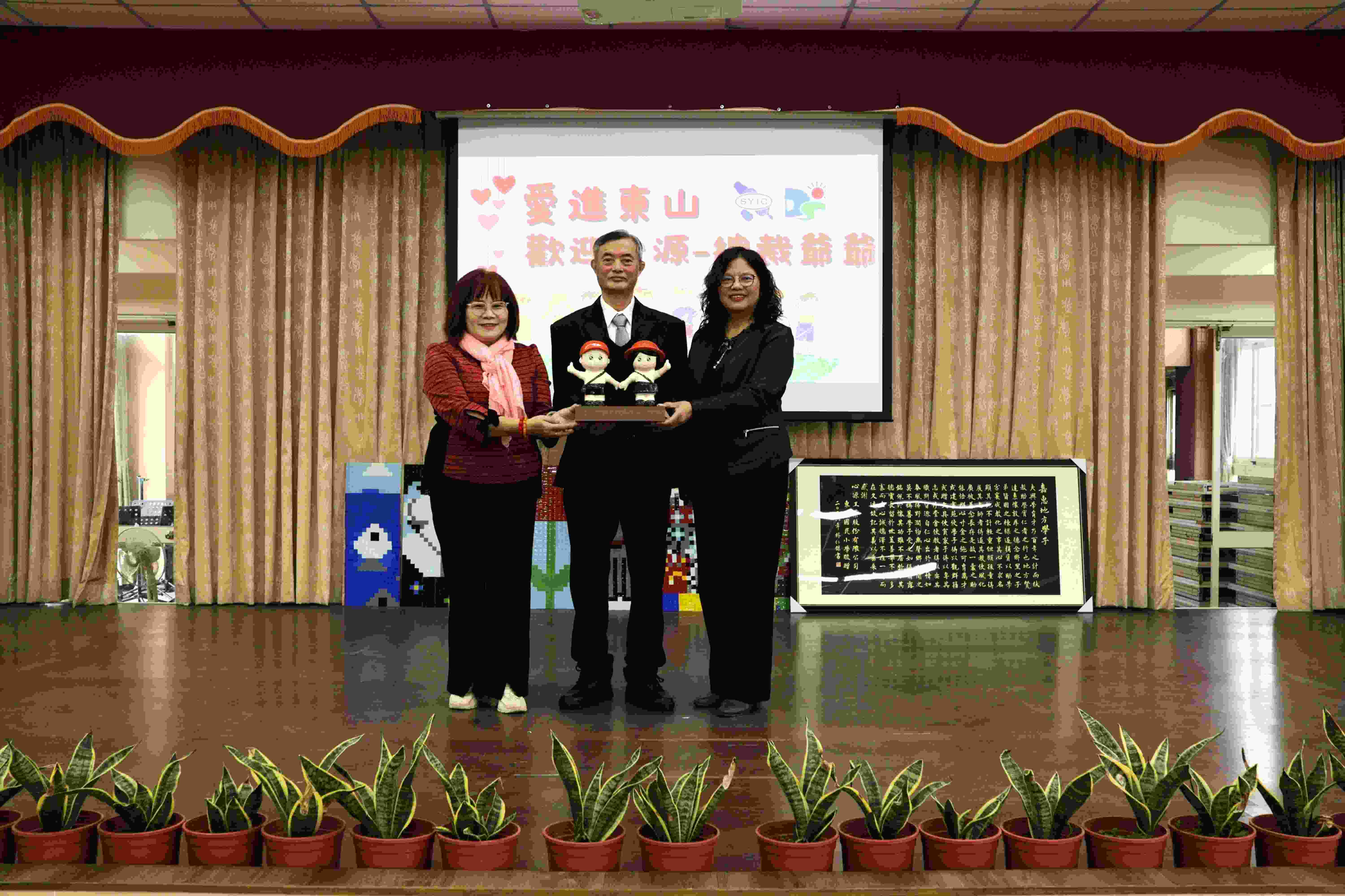 活動中,心源公司致贈學校「諸葛四郎」多語文動漫光碟,以及贈送每位小朋友星座馬克杯、環保收納購物袋、金邊虎尾蘭與清水散步文創品,透過文化素材引導孩子學習忠孝節義及環保與在地情感;學校也回贈林仁傑主任書法墨寶〈嘉惠地方學子〉及東山國小社團服,表達誠摯感謝。