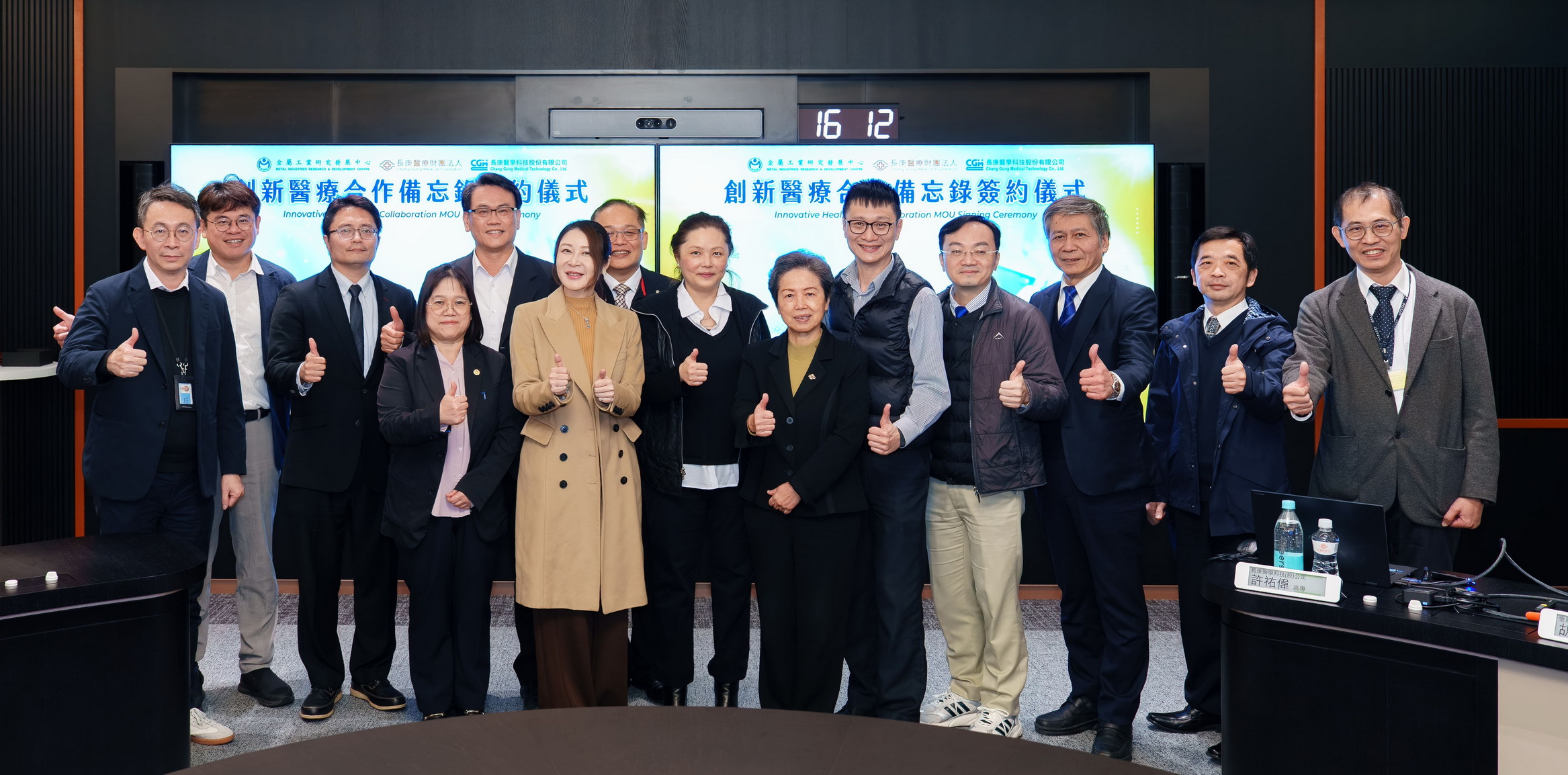 中圖:貴賓合影(前排左二: 金屬中心劉嘉茹董事長、前排右二: 長庚醫療財團法人王瑞慧董事長、前排右一: 長庚醫學科技公司楊麗珠董事長)