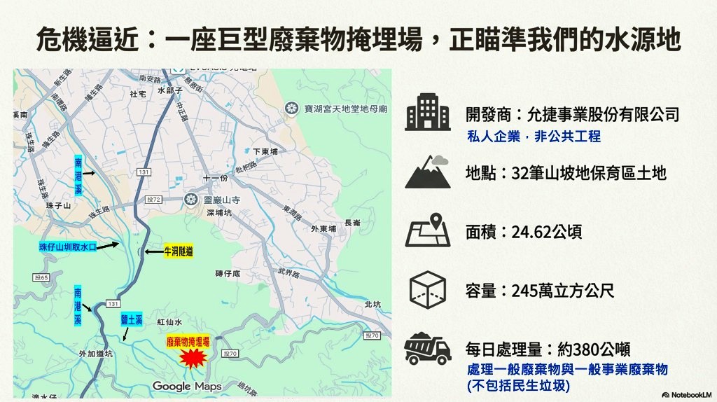 1.致命的地理選址(致災不可控): 場址位於斷層帶與高降雨區,地震與豪雨的後果將無法被限制,是典型的選址錯誤。