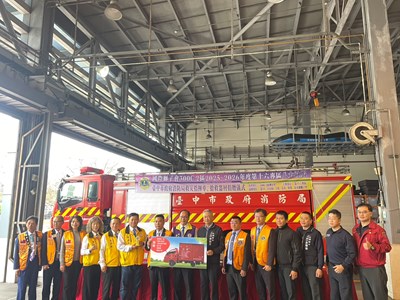 【記者楊川欽台中報導】國際獅子會300 C2區第16專區秉持熱心公益、回饋社會的精神,捐贈台中市消防局第四救災救護大隊消防警備車1輛及救災裝備器材1批,並於26日上午10時,在消防局第四救災救護大隊梧棲分隊舉辦捐贈儀式,由消防局專門委員林裕芳代表受贈,並回贈感謝狀,表達誠摯謝意。