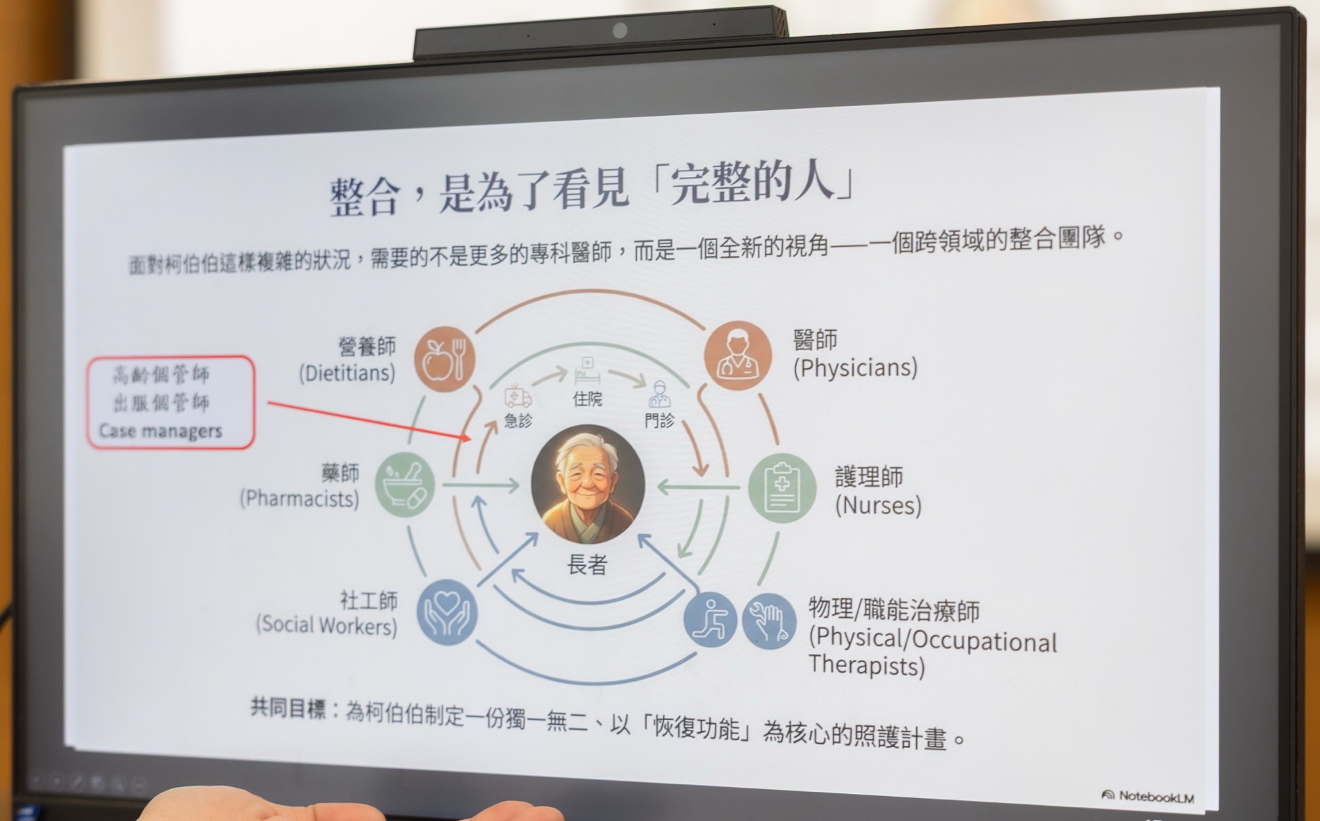 成大醫院高齡醫學部李欣玲醫師表示,柯伯伯的狀況反映出高齡患者「多重共病」與「衰弱」的特質,單一症狀背後往往隱藏多重器官功能異常。高齡醫學團隊介入後,透過「周全性老年醫學評估(Comprehensive Geriatric Assessment, CGA)」,系統化釐清問題,發現除了急性疾病狀況,更核心的挑戰是嚴重肌少症及多項微量元素缺乏,包括維生素D、維生素B12、鋅與銅等。高齡醫學團隊不僅處理急性病症,更啟動跨專業介入:由營養師調整飲食策略並補充口服營養補充品;物理治療師進行肌力強化與平衡訓練;出院準備服務個管師則協助連結長照2.0資源,減輕家屬照顧壓力。經過整合式照護後,柯伯伯不僅檢驗數值明顯改善,體力與活動能力也逐步恢復,重新回到他熟悉且喜愛的日常生活。