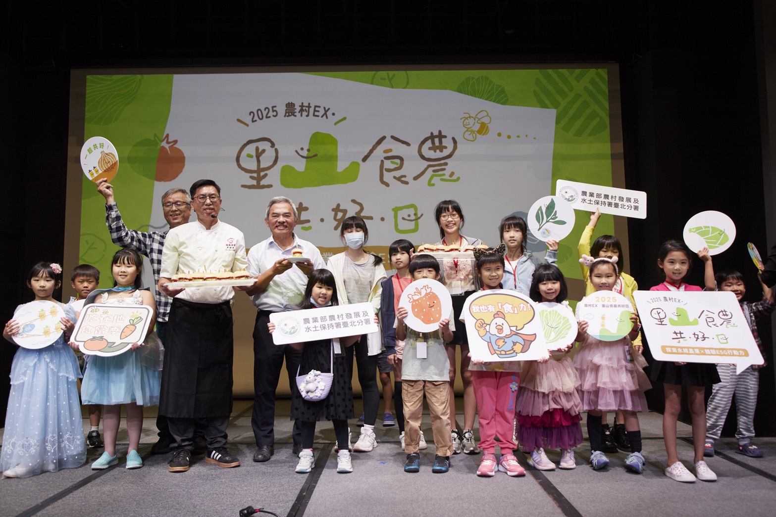 ▲「農村EX・里山食農共好日」登場,農村發展及水土保持署臺北分署蔡金龍分署長與出席貴賓及小朋友合影!
