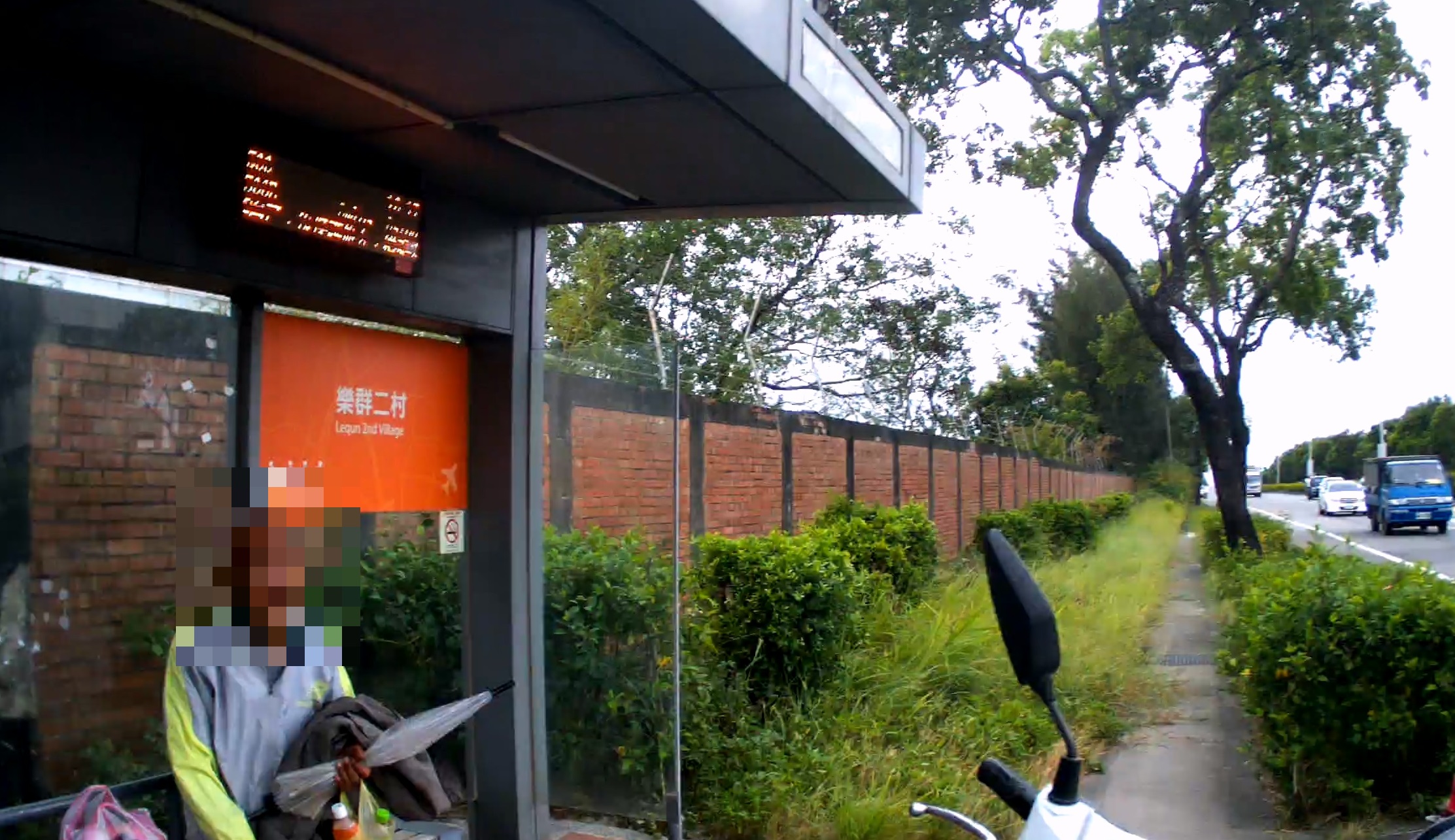 圖一:老翁坐在公車亭要等兒子。