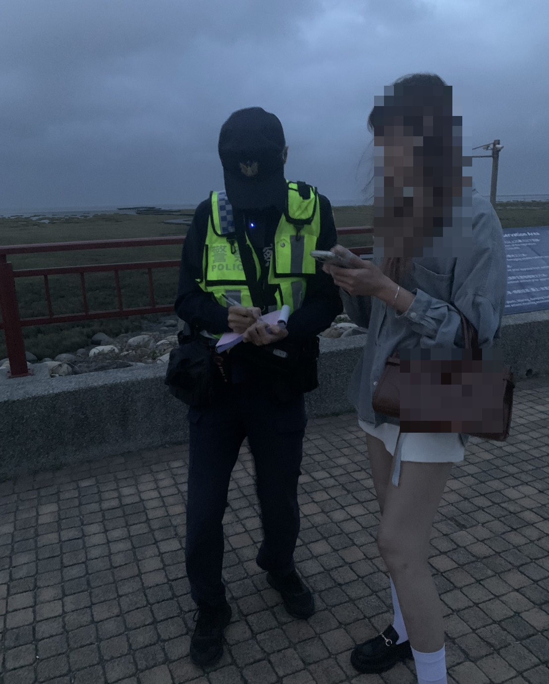 【記者楊川欽台中報導】鳳凰颱風警報期間,清水警分局員警勸離清水高美濕地遊客,共開5張勸導單,警方也藉機宣導普發1萬元防詐小撇步守護遊客荷包。